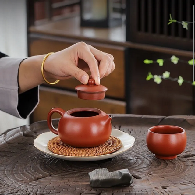Solid Color Original Ore Zisha Xishi Phoenix Teapot with Ball-shaped Filter, 200mL